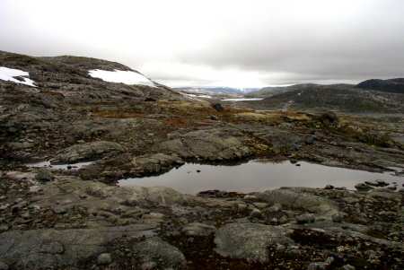 Aan de overkant kan je nog net de uitlopers van de Hardangerjøkulen zien. Aan de linkerkant zie je heel Finse liggen.