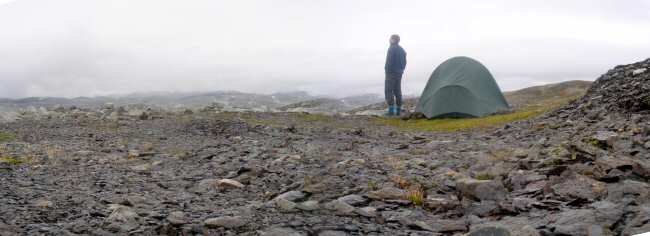 De slaapplek voor de eerste nacht in de buurt van het of de Steinbrunege. 's Avonds was het een beetje koud en regenachtig maar met een