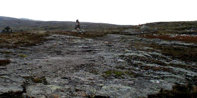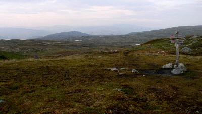 De kriebelige lichte streep in de verte is het riviertje waaraan de hut Kjeldebu zou moeten liggen.