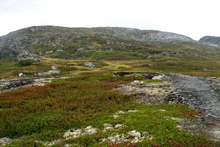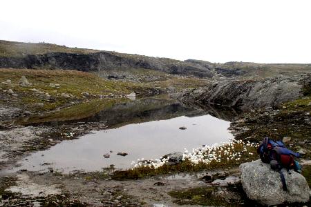De noord oever van het Sysenvatnet. Hier begon tevens een steile en zeer modderige afdaling die eindigde op de zelfde hoogte als het meer.